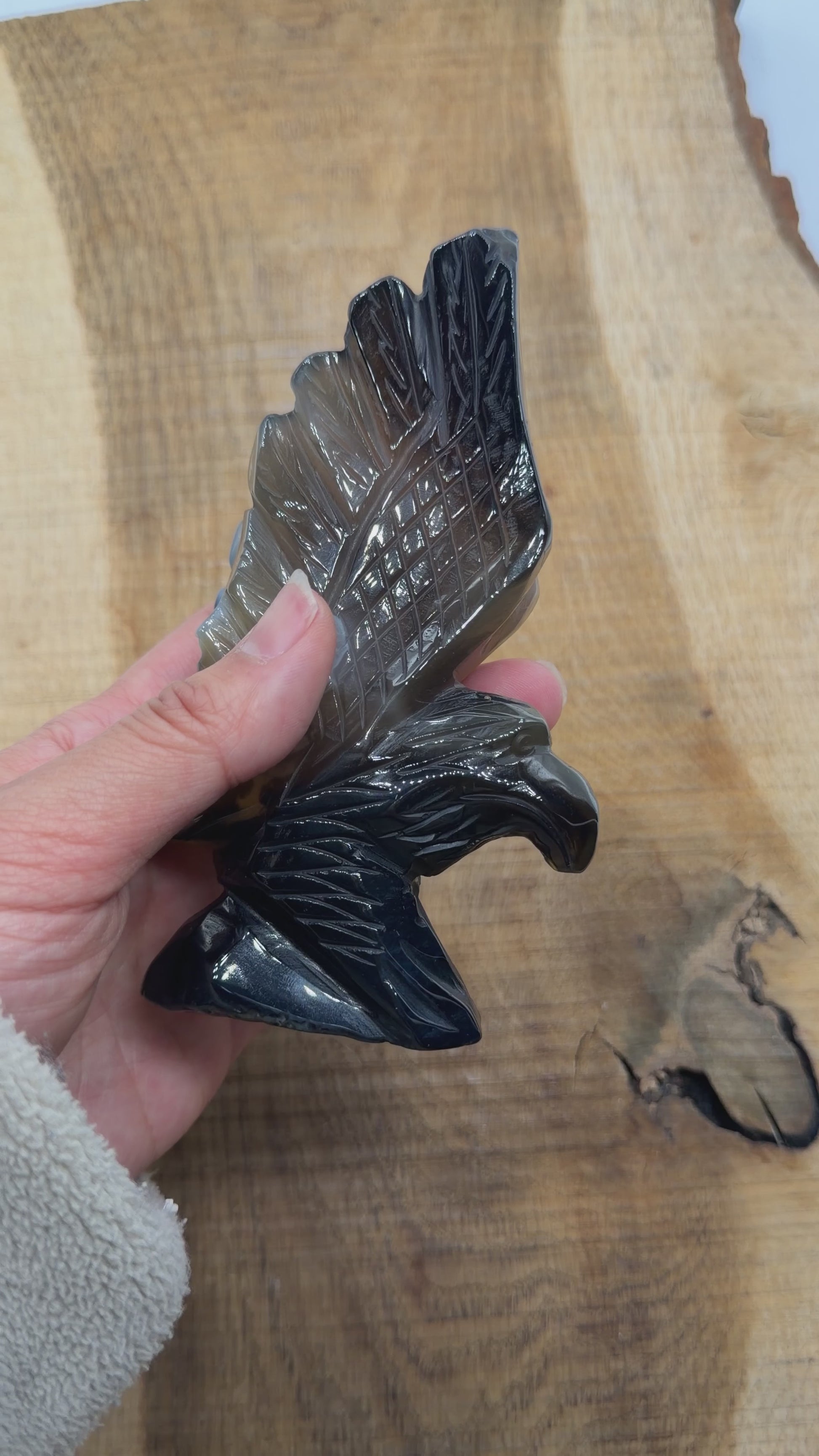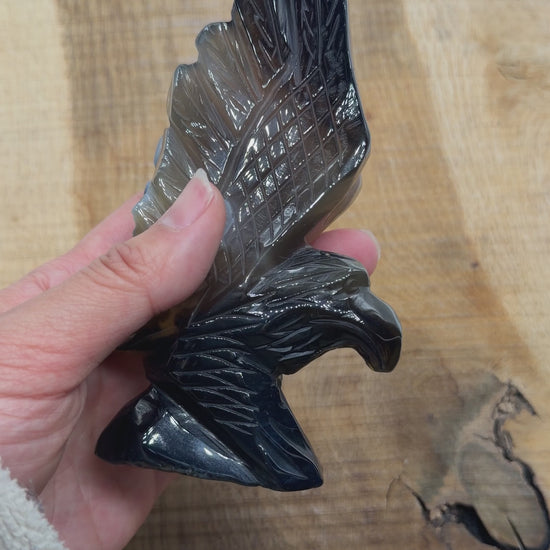 Figurine Aigle en Agate Botswana A+ — 14x8 cm (modèle unique nº2)