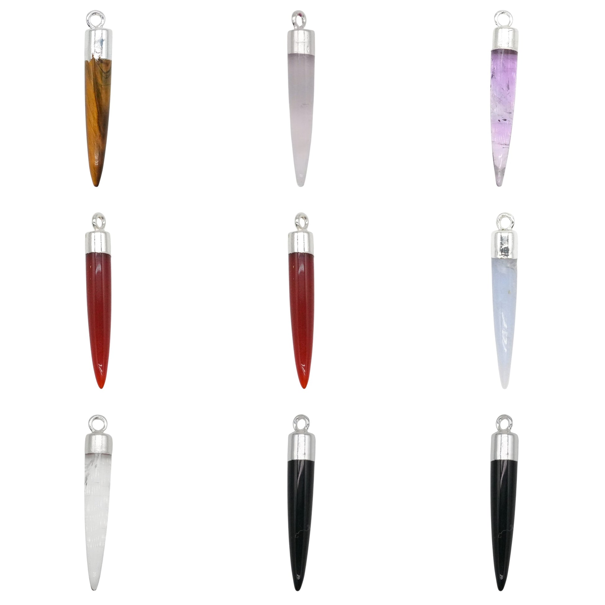 Pendentif pointe argenté en pierre 3,5x0,5 cm (7 pierres disponible)