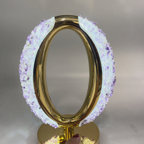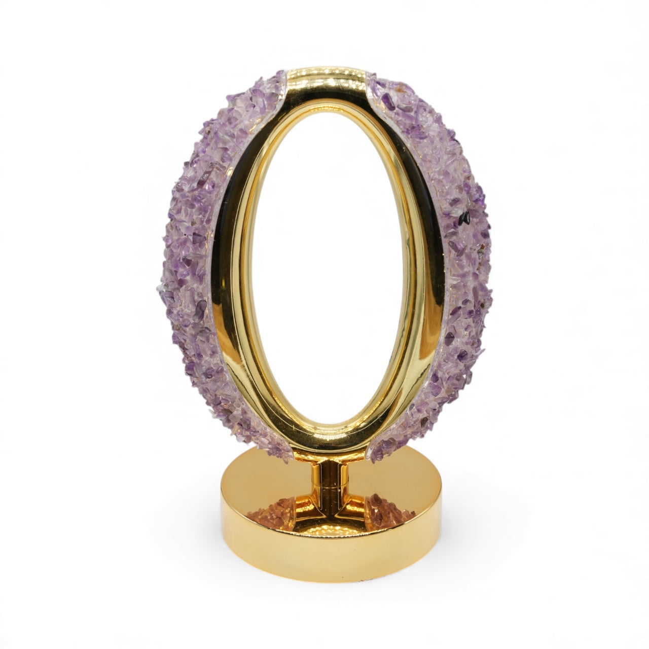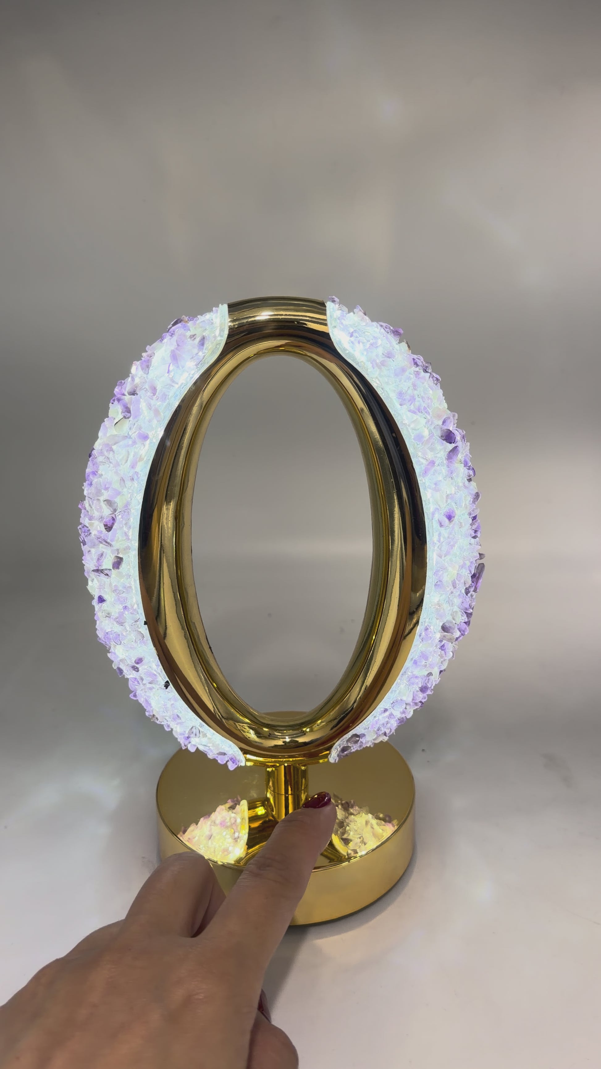 Sublimez votre intérieur avec cette lampe ovale raffinée, décorée de véritables mini-pierres d’améthyste soigneusement disposées à la main. Son design alliant doré miroir et cristaux naturels apporte une touche à la fois moderne, lumineuse et spirituelle à n’importe quelle pièce.