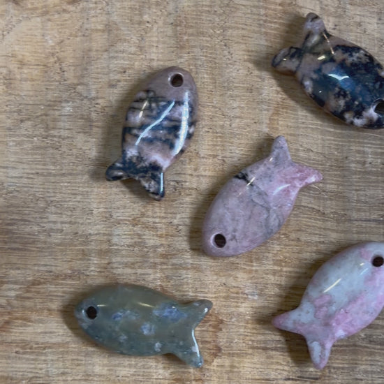 Lot de 5 poissons en pierre naturelle — trou 2 mm