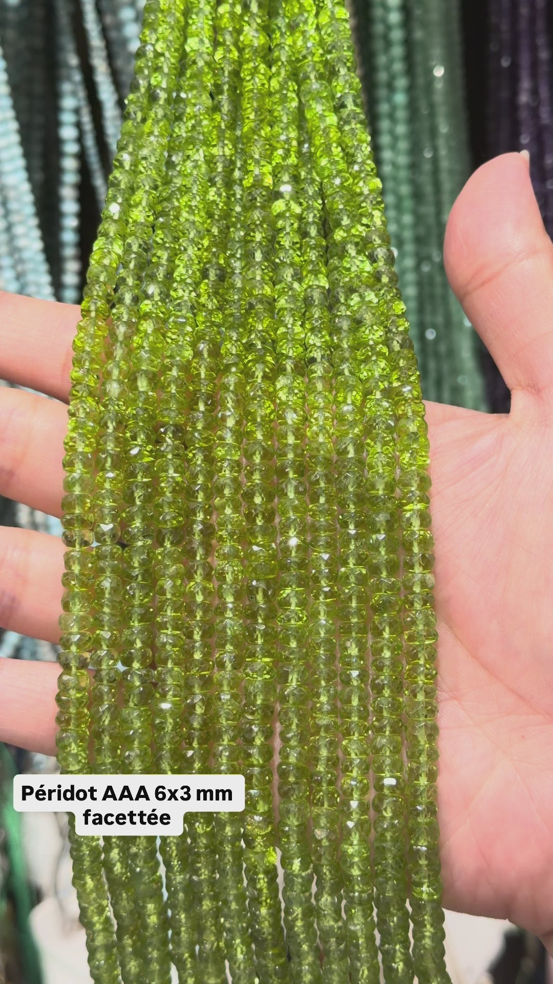 Fil de pierre Péridot AAA 6x3 mm facetté