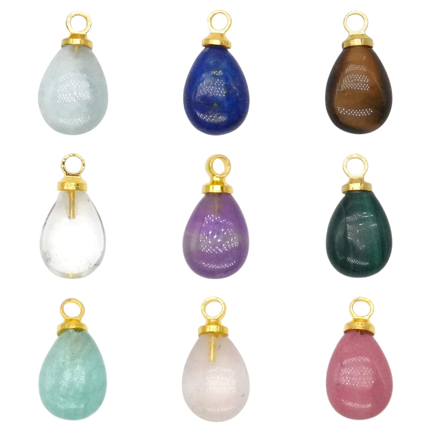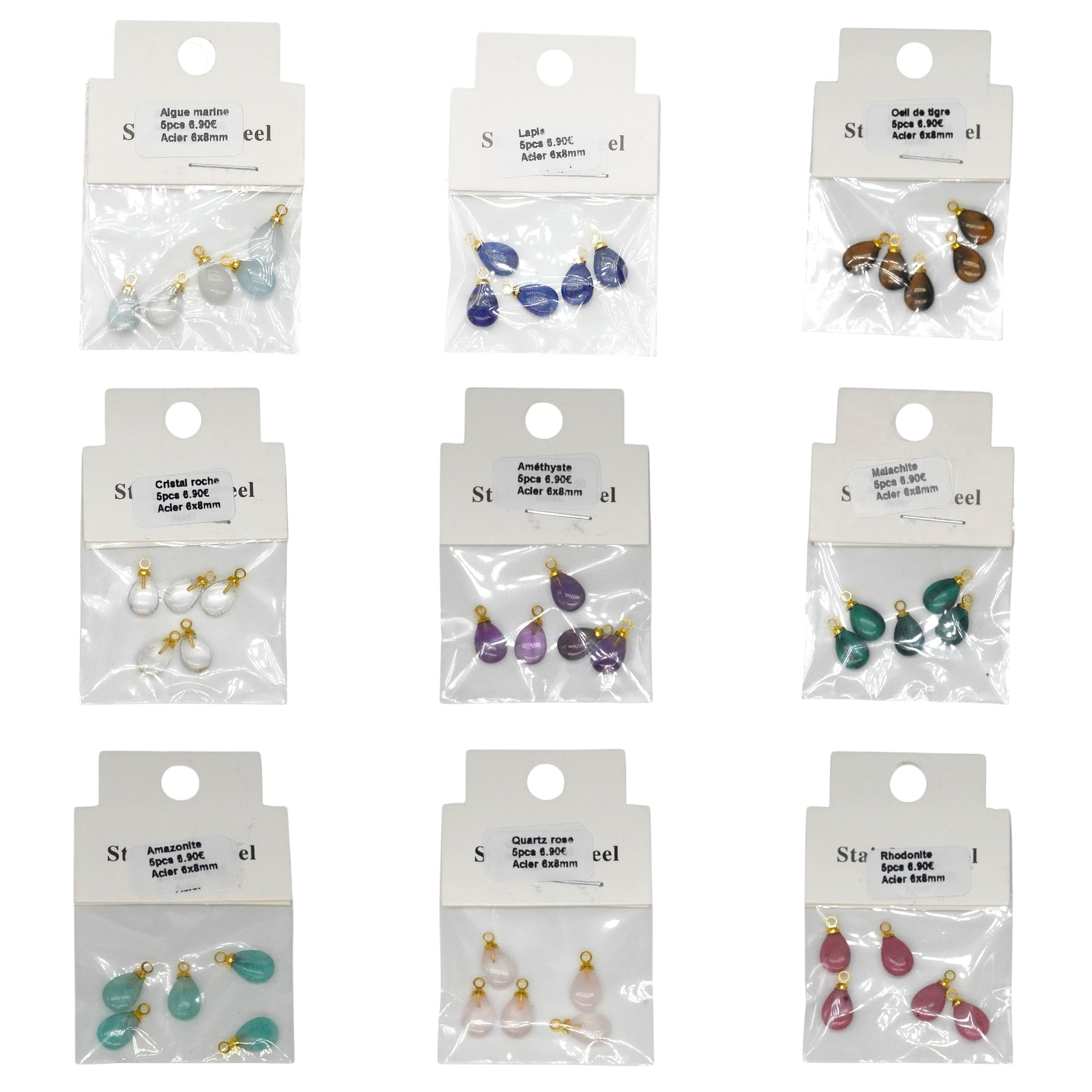 Lot de 5 Pendentif charm goutte en pierre naturelle & acier inoxydable
