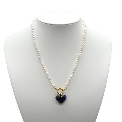 Spéciale St-Valentin - Collier perle d’eau douce 3 mm avec pendentif forme coeur (bélière doré incluse) (20 pierres disponible)