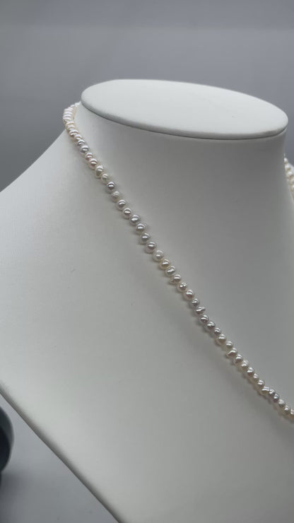 Collier en perle d’eau douce 3 mm avec bouée en acier inoxydable (Les formes peuvent légèrement variées car elles sont naturelles)