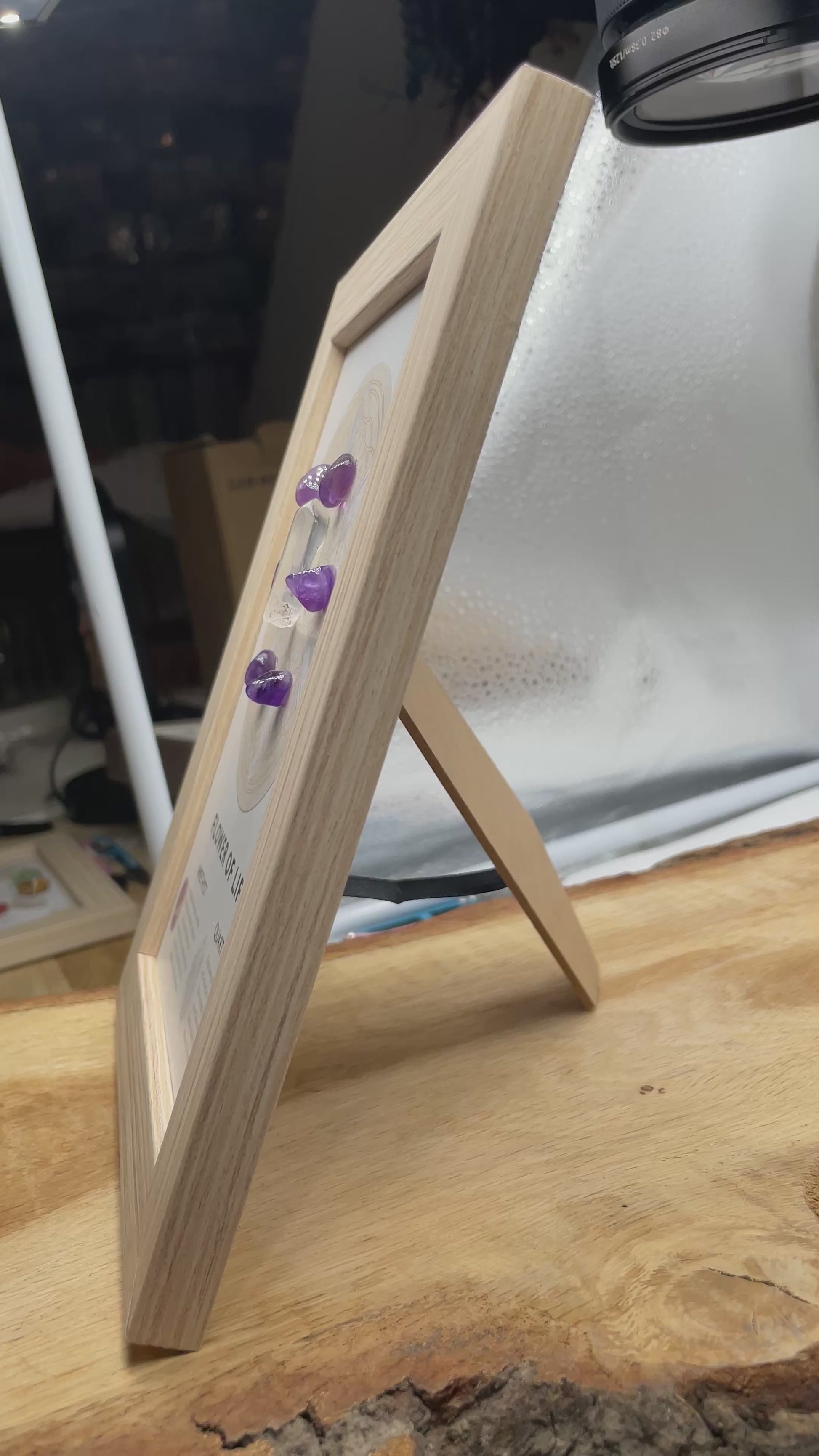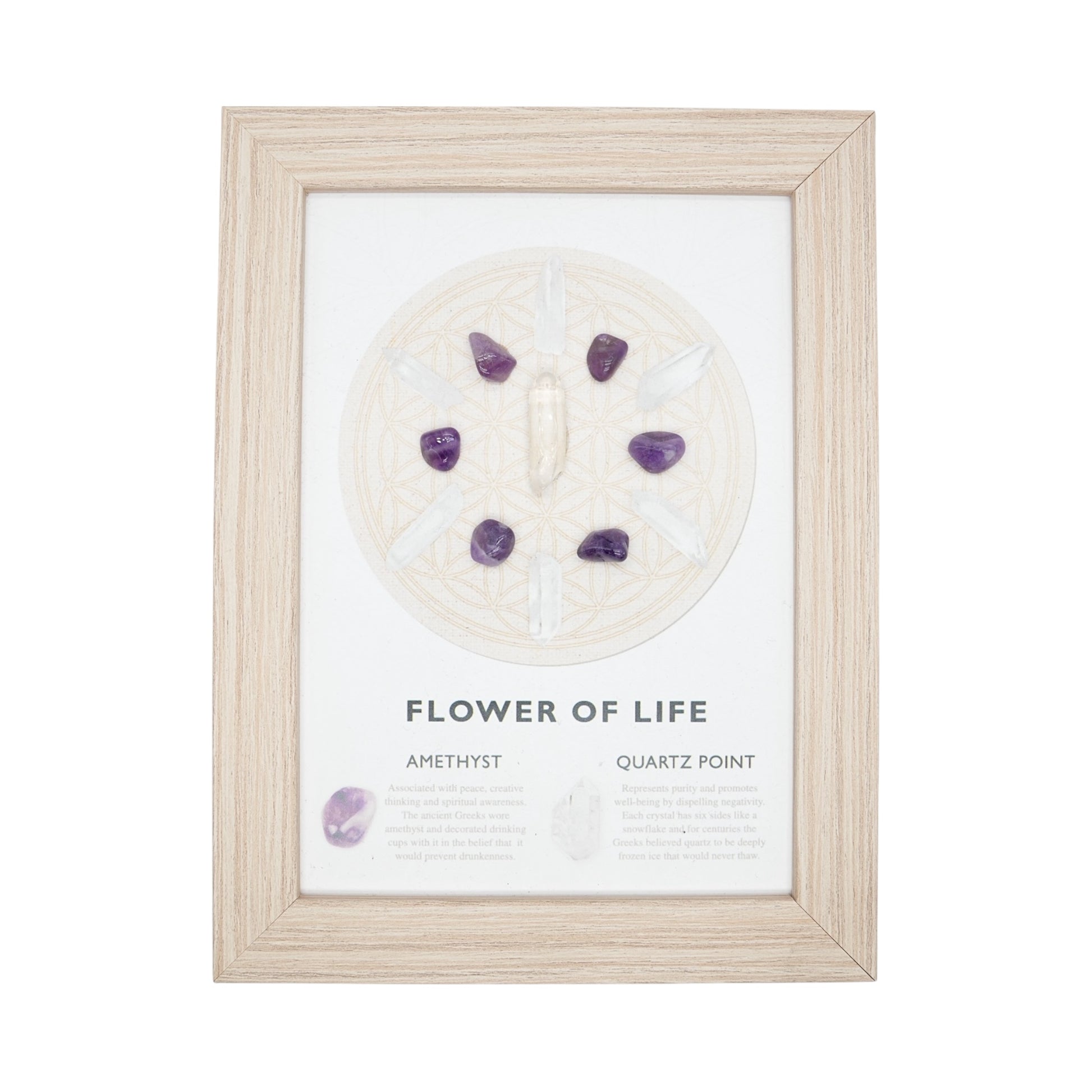 Cadre énergétique Fleur de Vie Améthyste & Quartz — Harmonie & Énergie Positive 20,5x15.5 cm