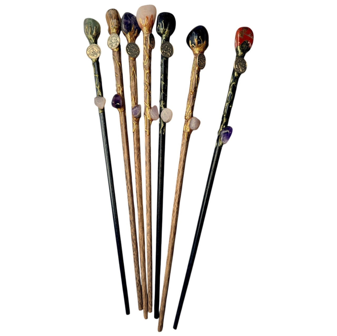 Ces baguettes sont utilisées pour des pratiques spirituelles ou magiques pour canaliser l'énergie, effectuer des rituels, ou symboliser diverses forces et intentions