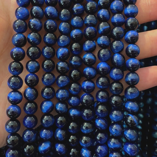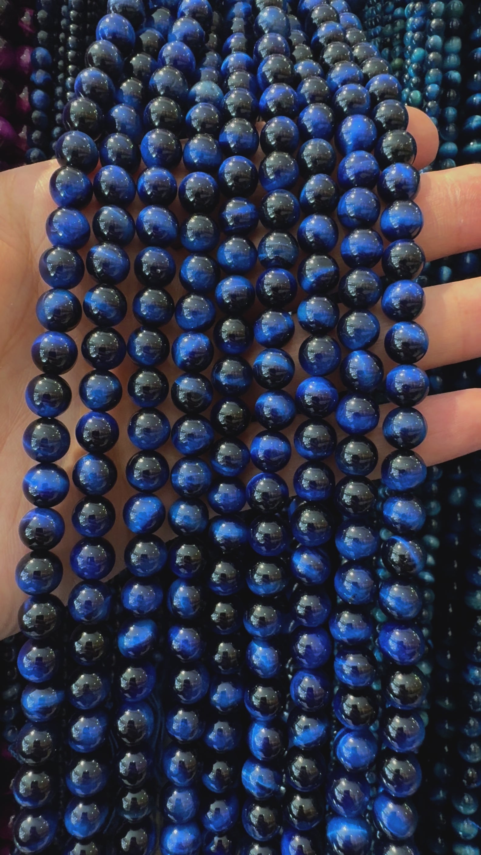 Fil de Perles Oeil de Tigre AA BLEU FONCÉ chauffé (4)