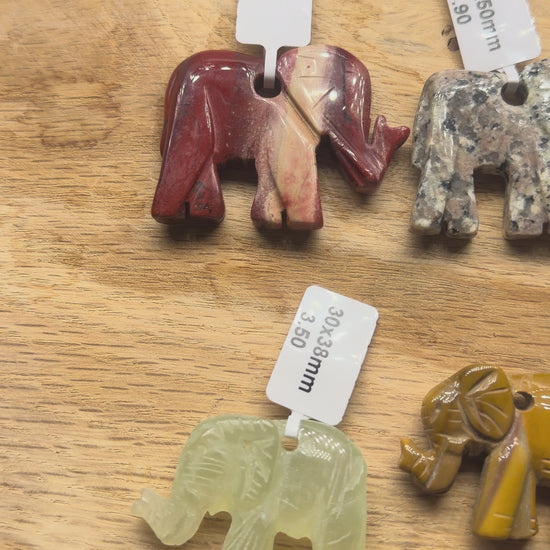 Pendentif Éléphant (pierre naturelle choisie aléatoirement — 2 tailles disponibles) percé devant