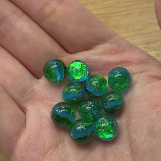 Ces perles, fabriquées en pâte de verre et en feuille d'or, sont réalisées à la main & brille dans le noir.