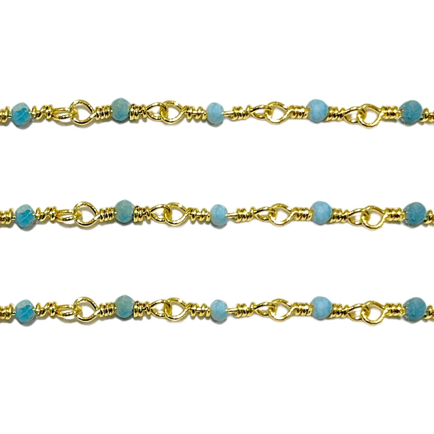 Chaîne au mètre Aigue marine laiton doré 2 mm