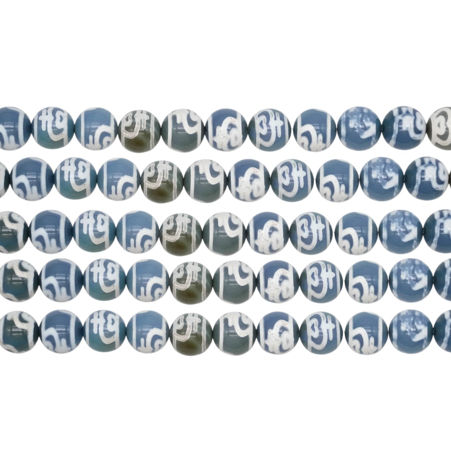 Fil de perle Agate du Tibet bleue 10 mm #46-2