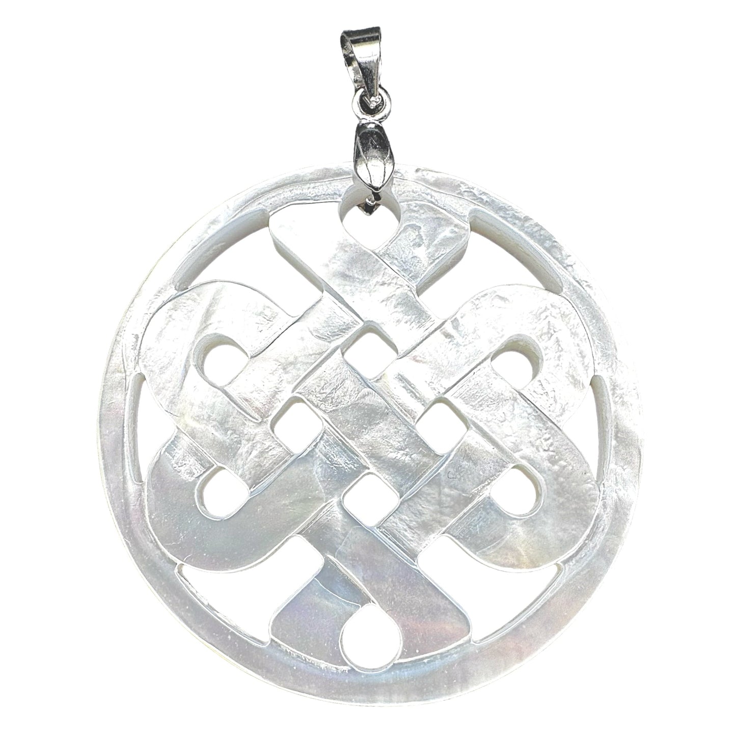 Pendentif nœud celtique en nacre blanche (symbole spiritualité & protection)