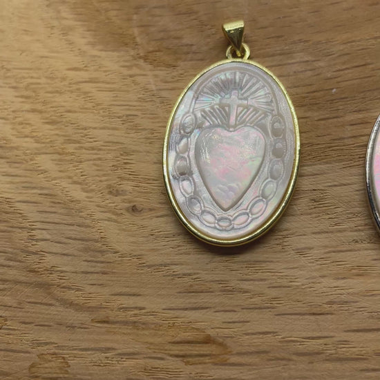 Pendentif oval Sacré-Cœur de Jésus en Nacre (protection spirituelle)