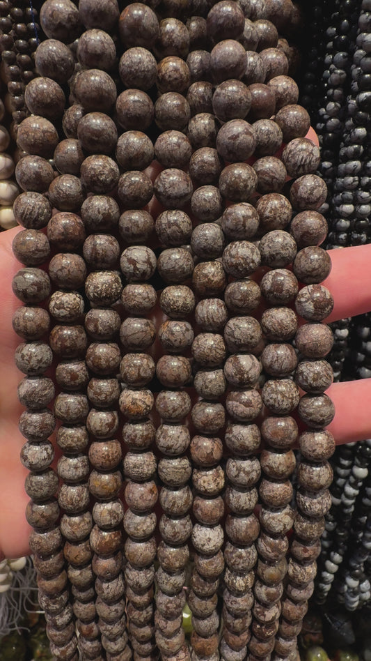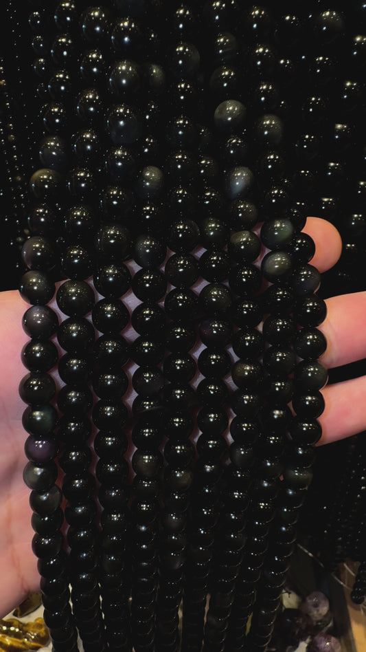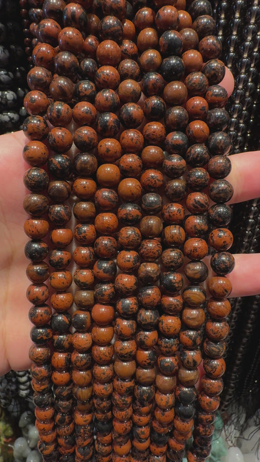 Fil de perle Obsidienne Flocon de Neige Rouge A
