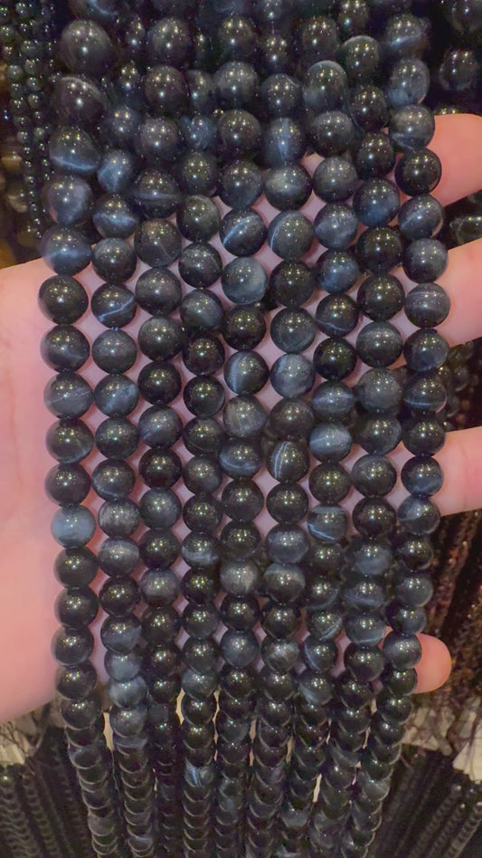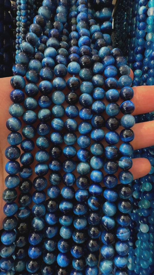 Fil de perle Oeil de Tigre AA BLEU CLAIR chauffé (5)
