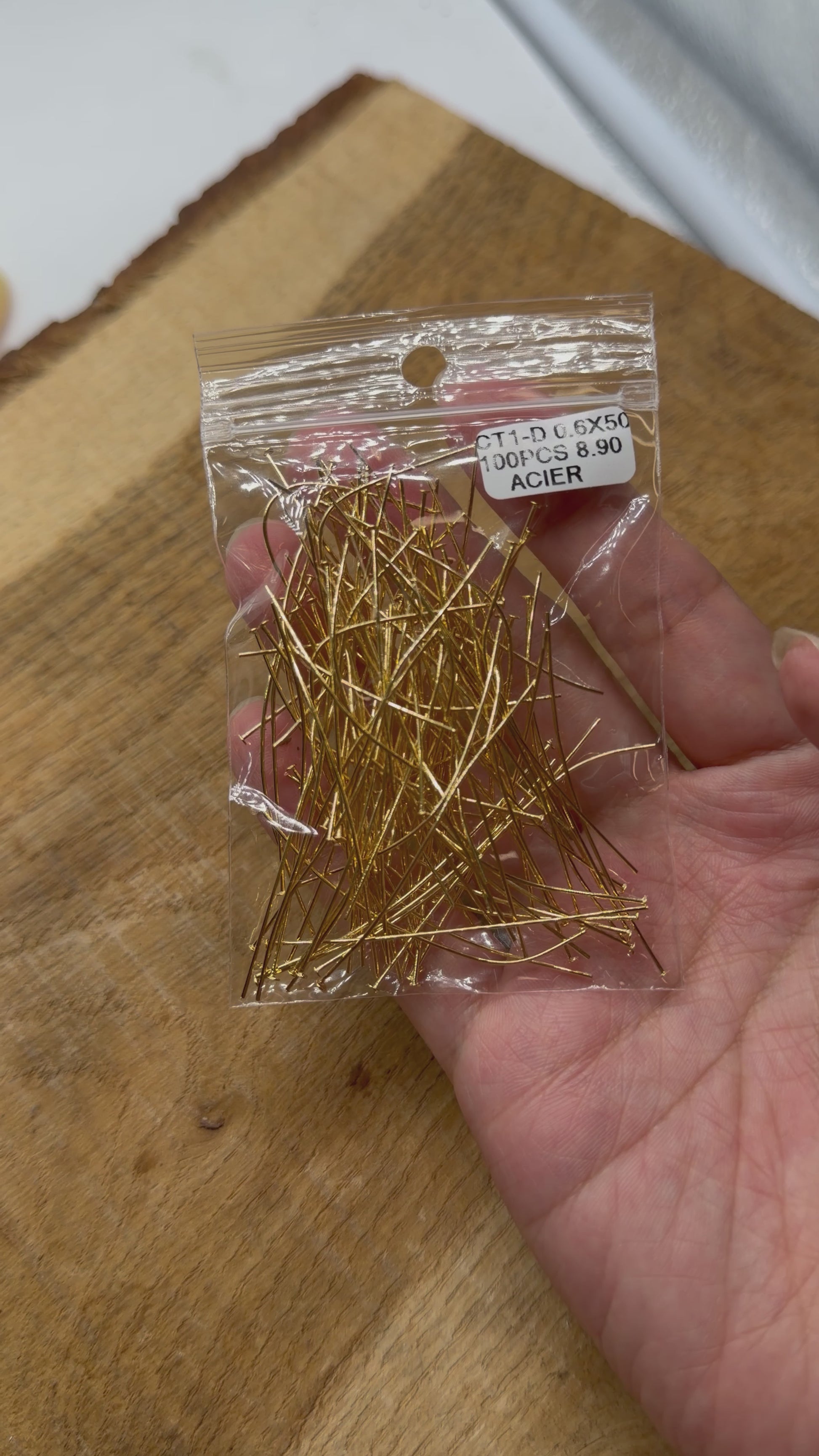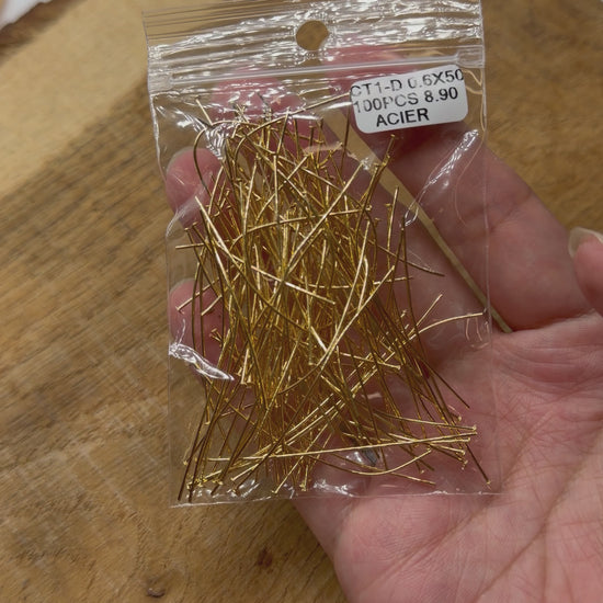 100 Tiges clous plats en acier doré pour fabrication de boucle d'oreille— CT1-D 0.6x50 mm