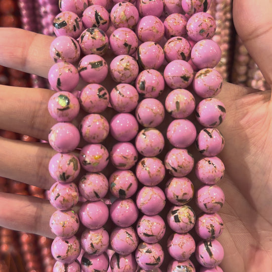 Fil de perle Howlite coquillage rose bonbon chauffé