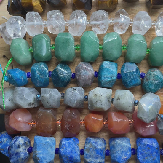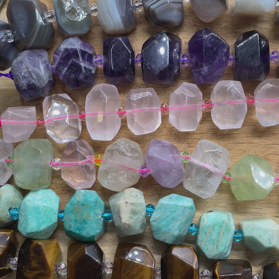Fil de perle rectangle facetté en pierre naturelle 13x18 mm (12 pierres disponible)