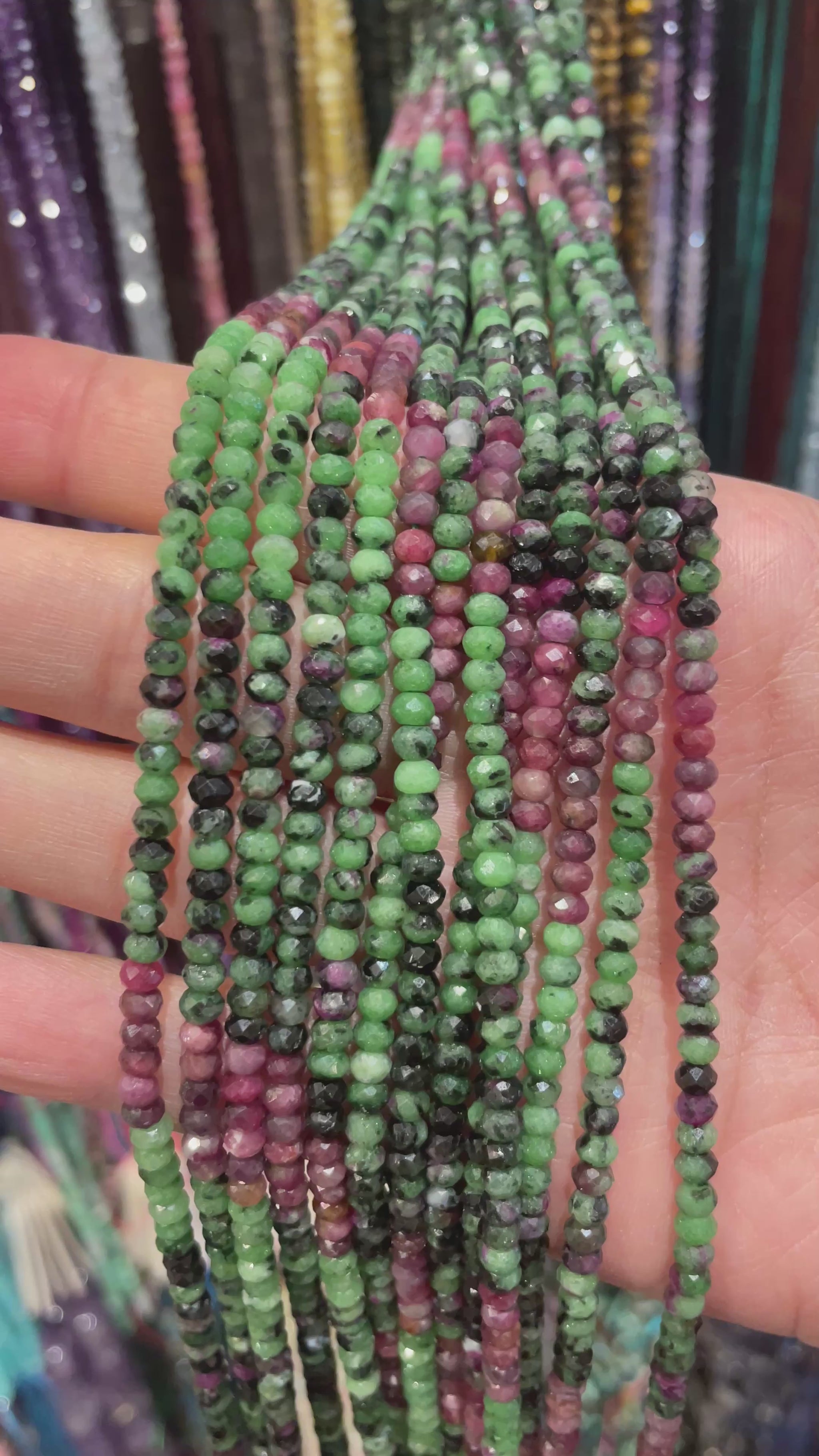 Fil de perles rondelles facettées Rubis sur Zoisite verte 3x4 mm