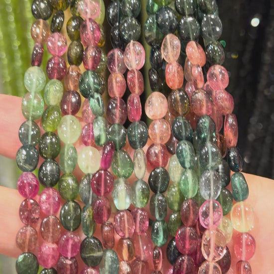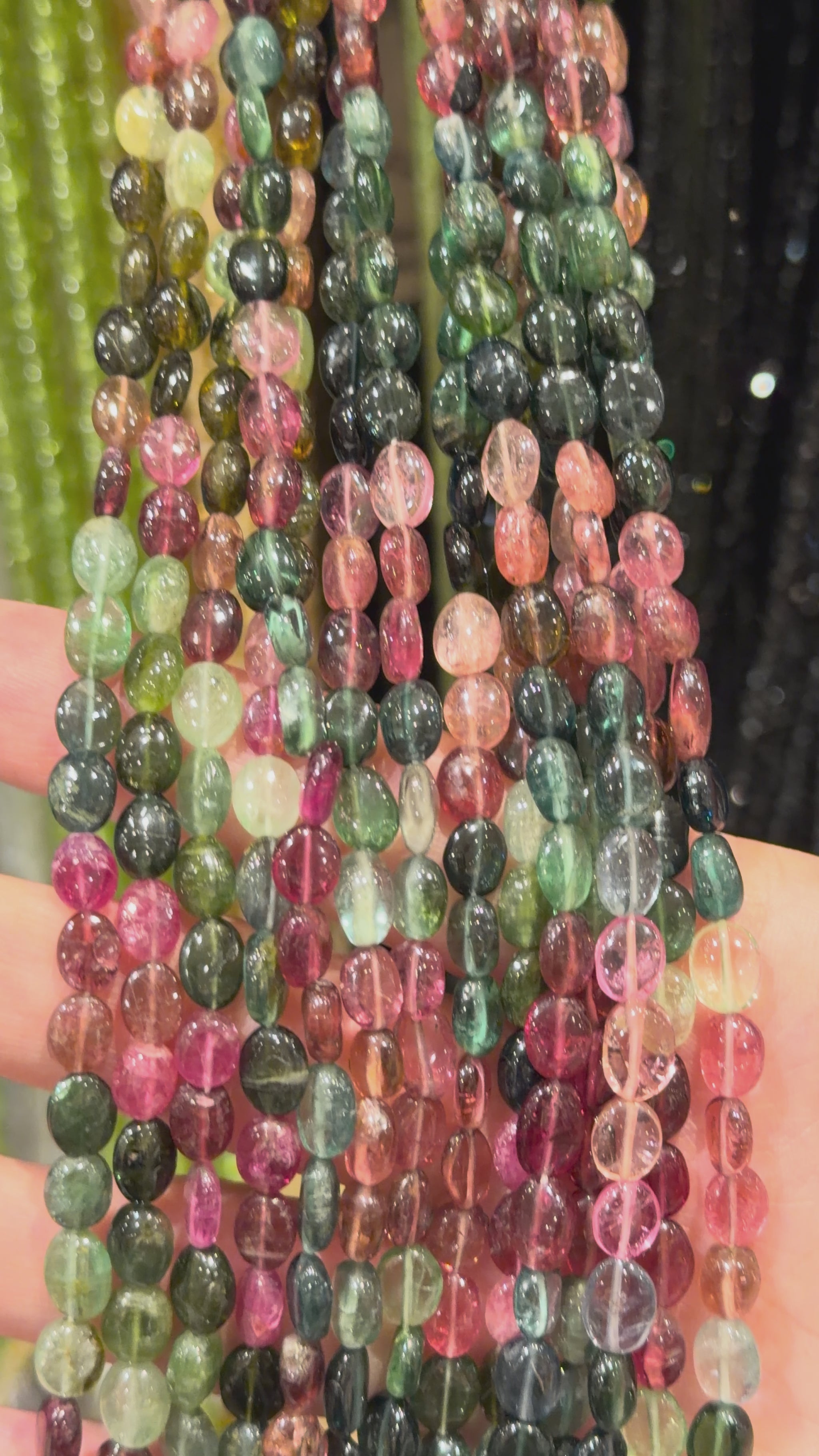 Fil de pierre tourmaline multicolore 7x5 mm ovale