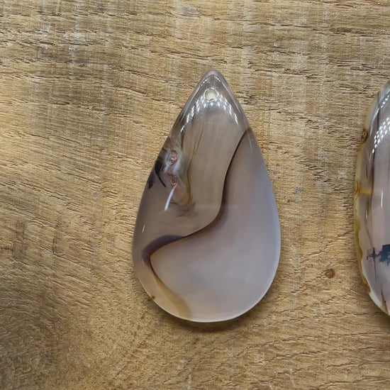 Pendentif Agate fleur noire forme aléatoire percé devant