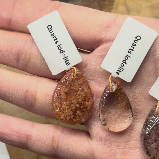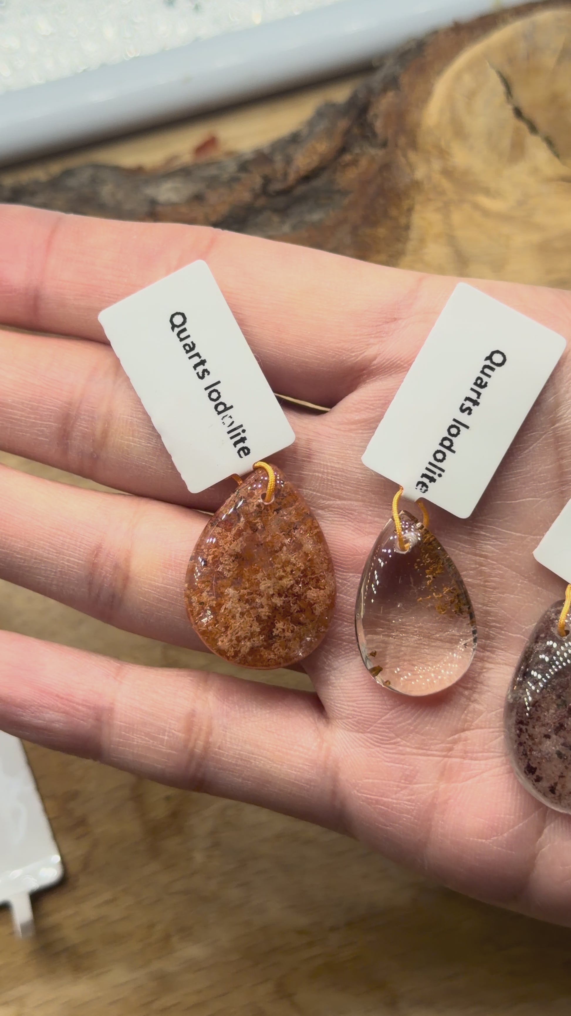 Petit pendentif en Quartz Lodolite 1,5x 2 cm environ goutte plate percé devant