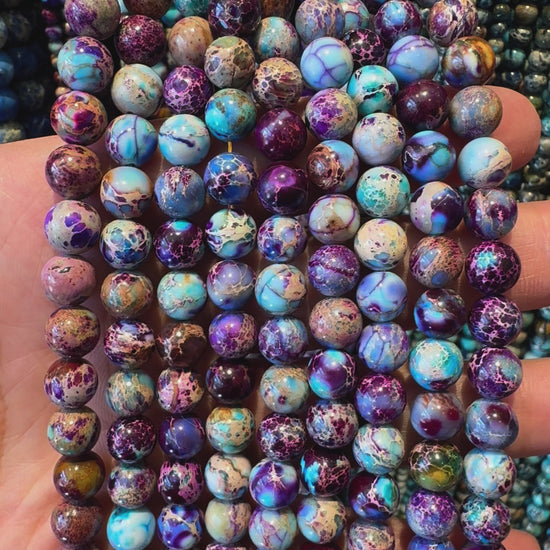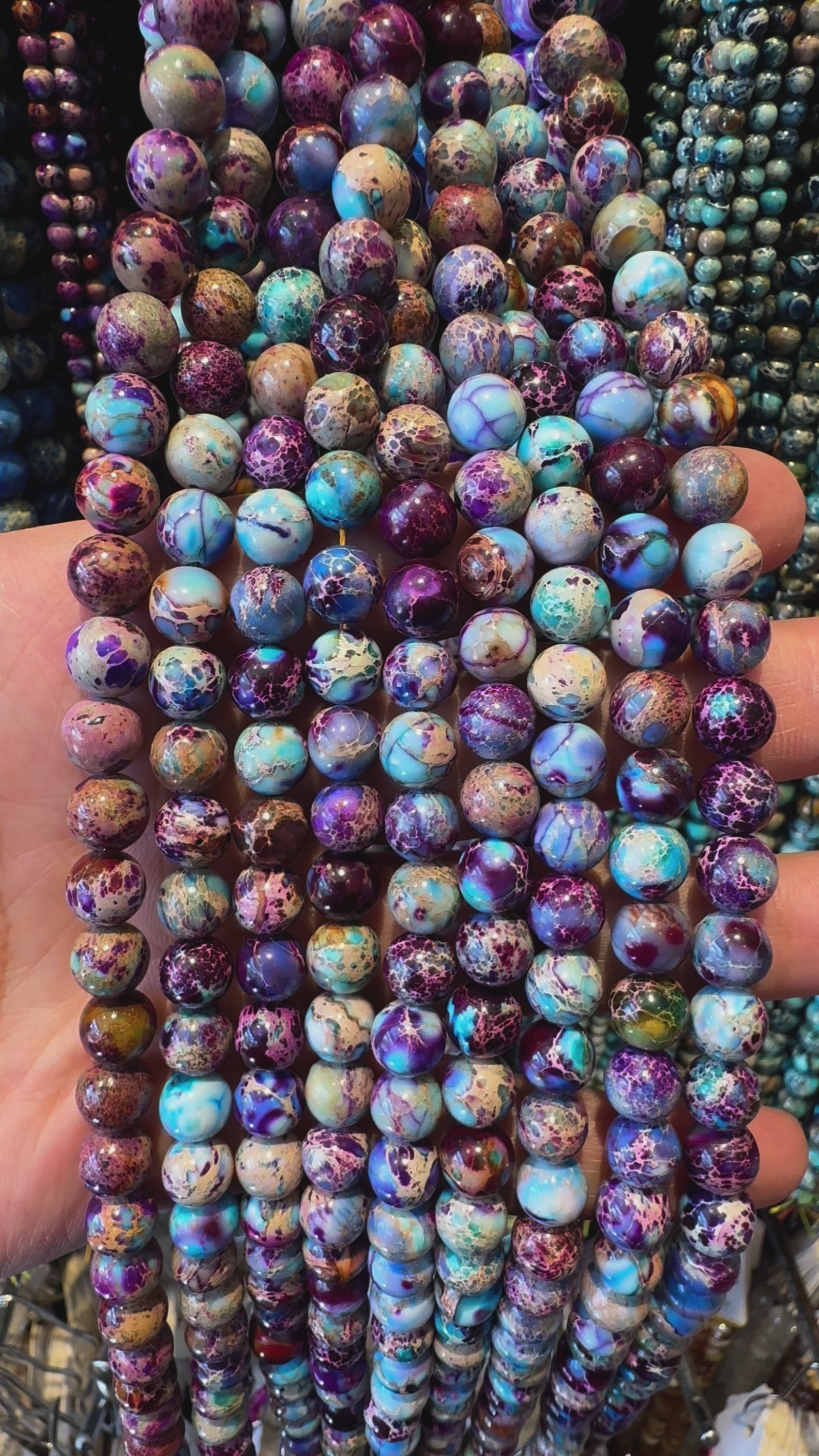 Fil de perles Jaspe Impérial avec couleur chauffée (ne déteint pas)