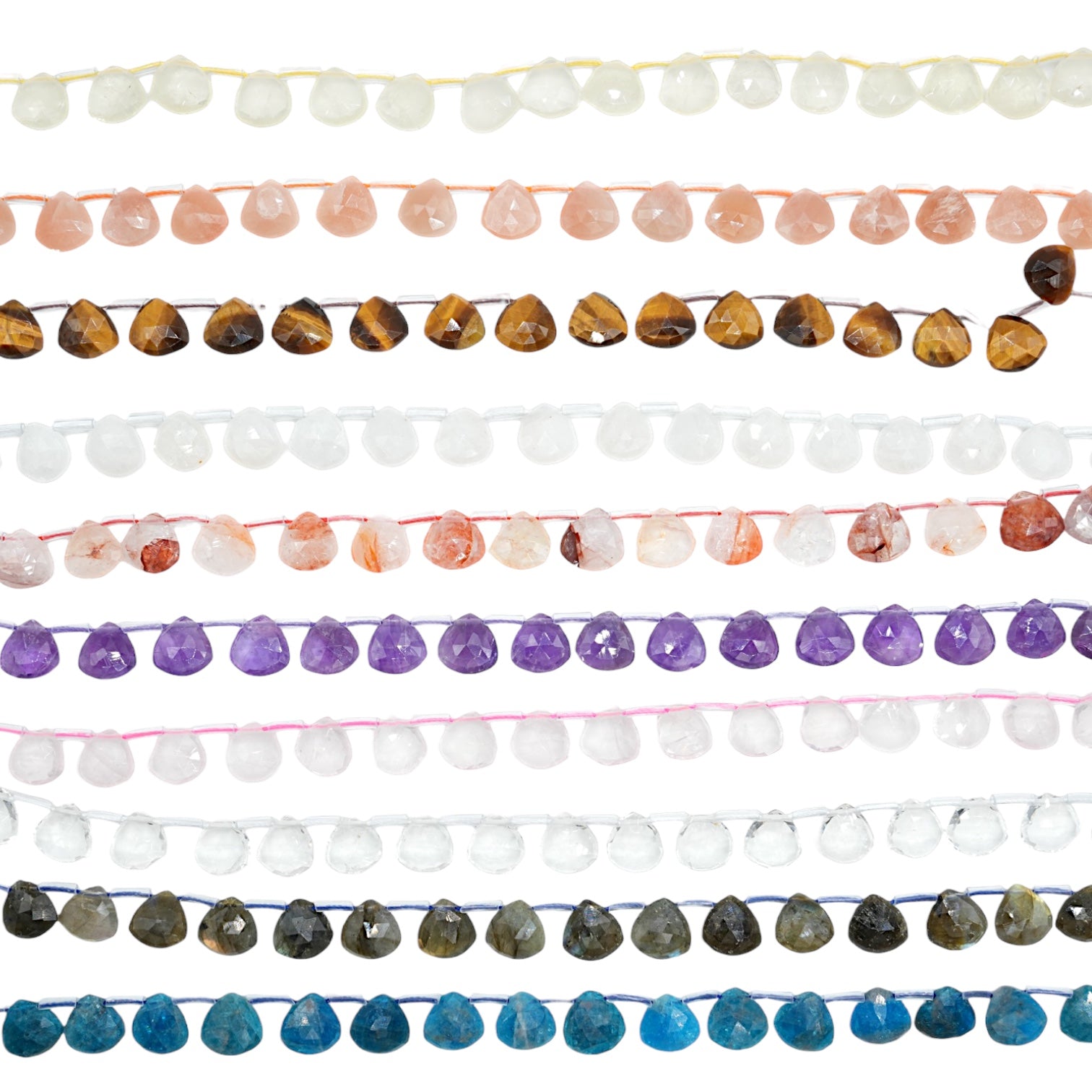 Fil de perle Goutte forme poire facetté 12x12 mm (11 pierres naturelles disponible)