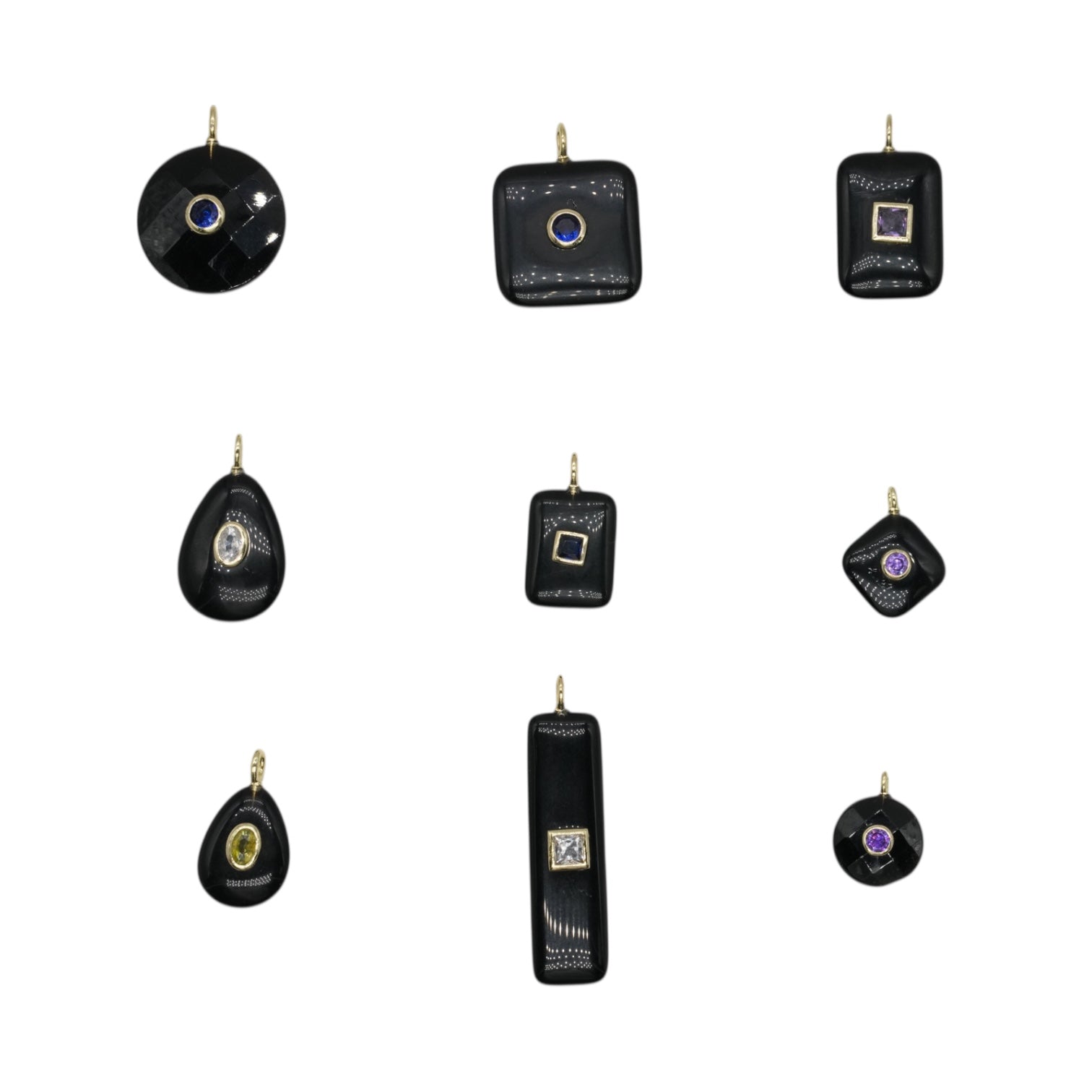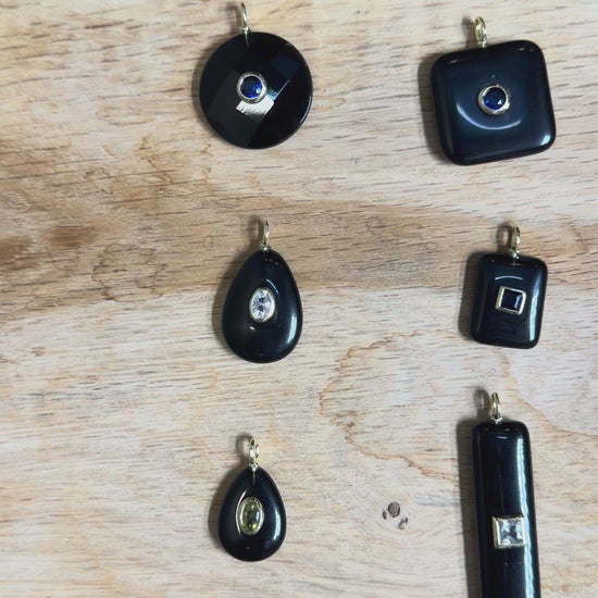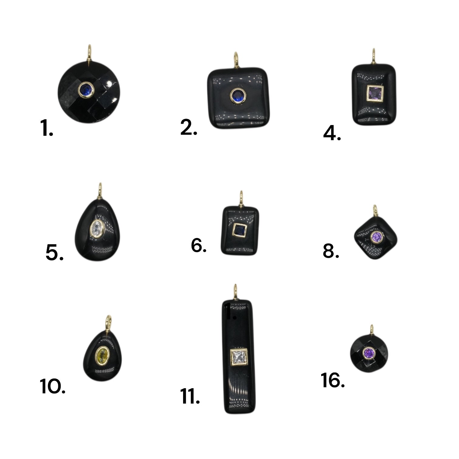 Pendentif en obsidienne noire avec pierre Zircon couleur aléatoire (11 formes disponible)