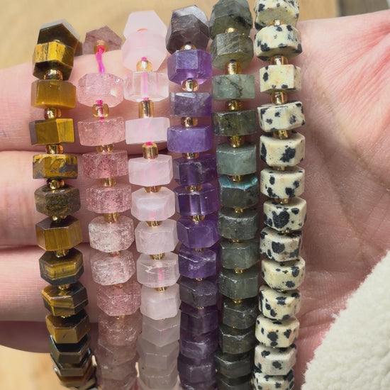 Fil de perle forme rondelle hexagone facetté 8x4 mm (6 pierres disponible)