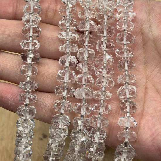Fil Cristal de roche en rondelle facettée 5x9 mm