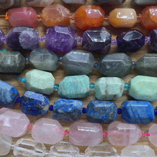 Fil de perle rectangle facetté en pierre naturelle 15x20 mm (8 pierres disponible)