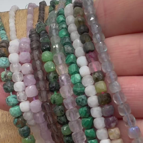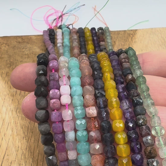 Fil de perles cube facetté 4x4 mm (40 pierres disponibles)