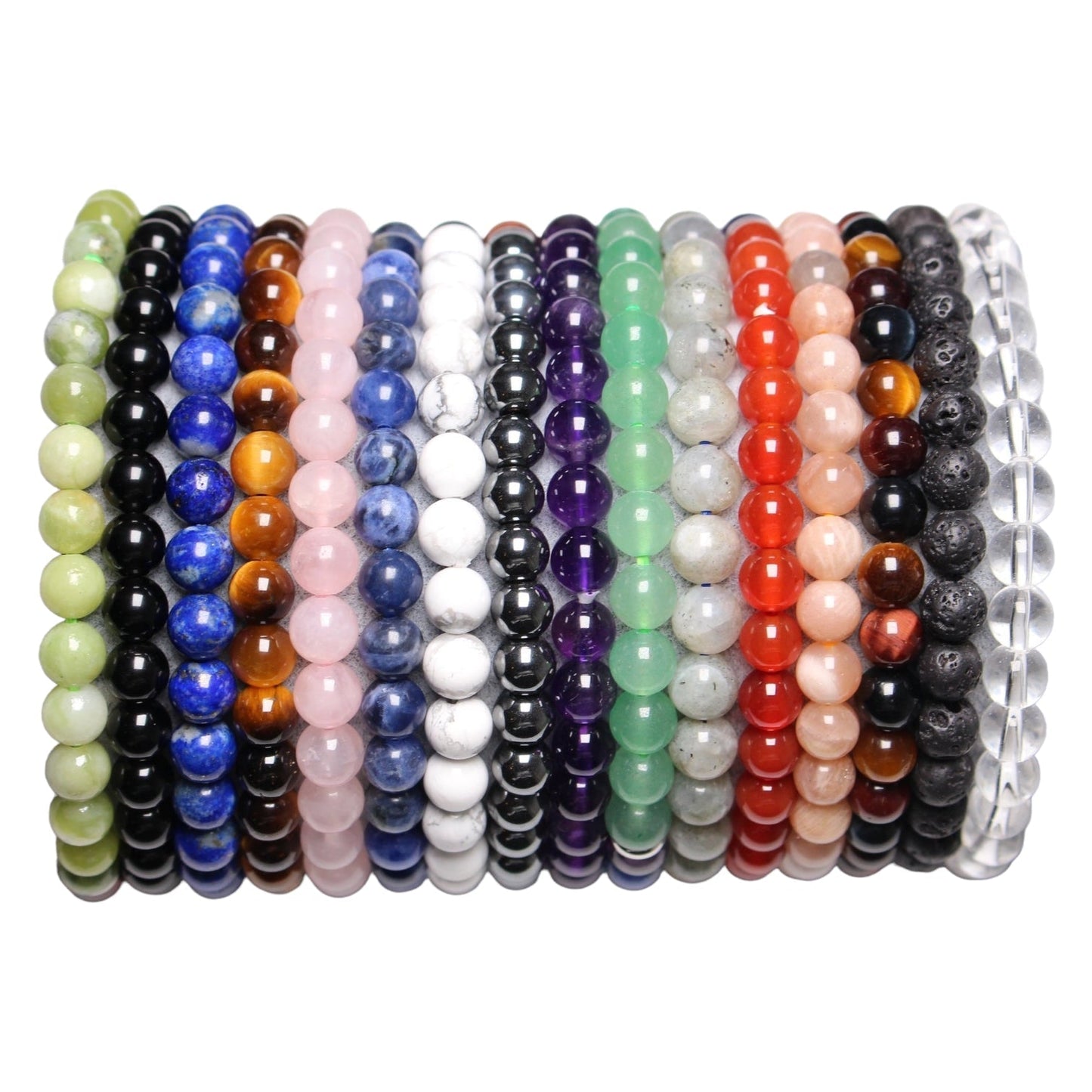 Pierre au choix (16) : Améthyste, Pierre de lune rose, Cristal de roche, Quartz rose, Aventurine verte, Cornaline, Jade néphrite, Sodalite, Howlite, Hématite, Lapis lazuli, Labradorite, Trois oeil, Onyx noir,