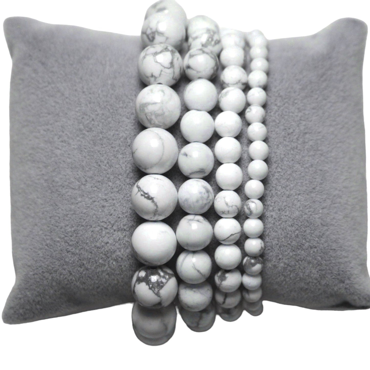 Bracelet mixte en Howlite blanche en pierre naturelle :
