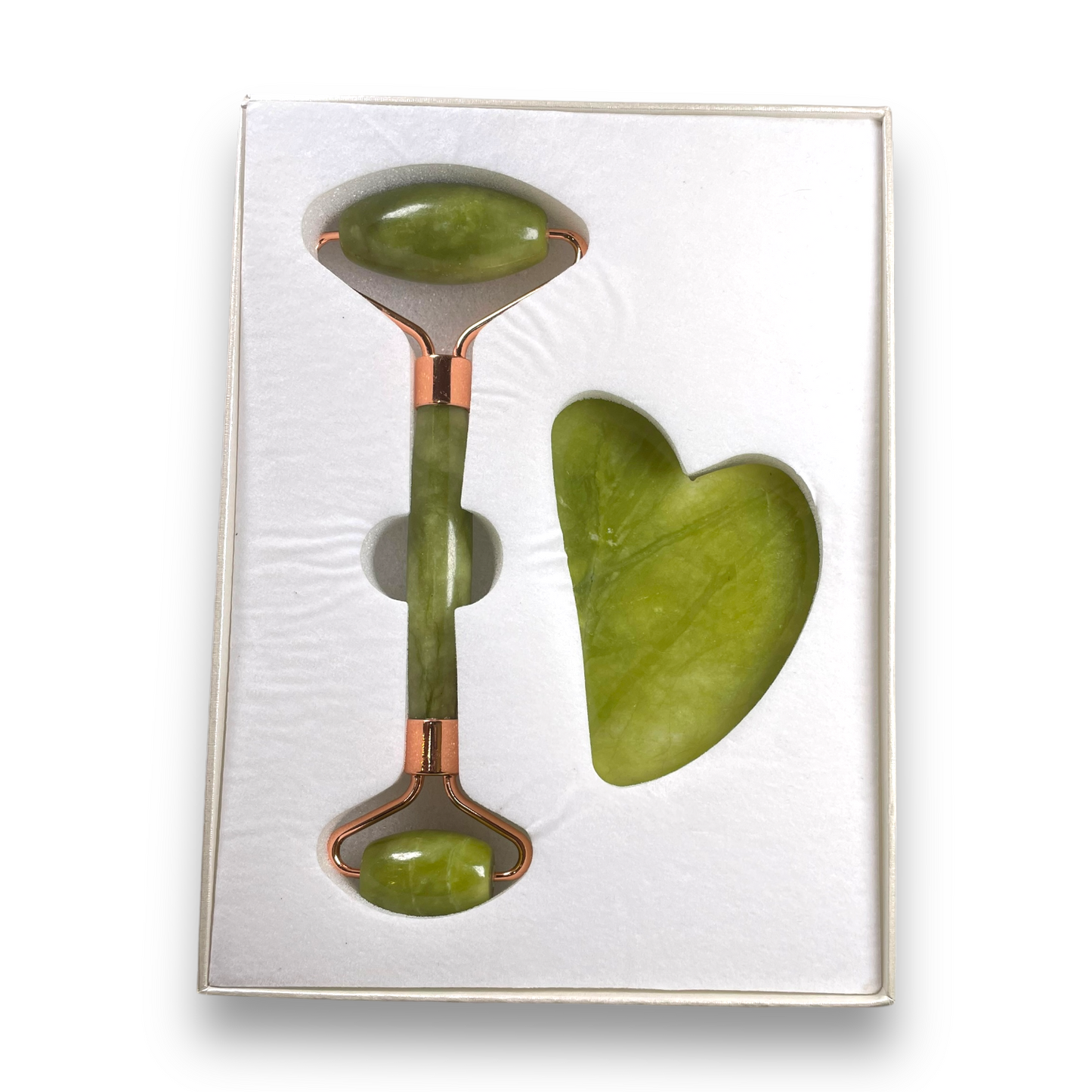 Coffret gua sha & rouleau de massage pour le visage & le contour de l’oeil — Jade de Thaïlande