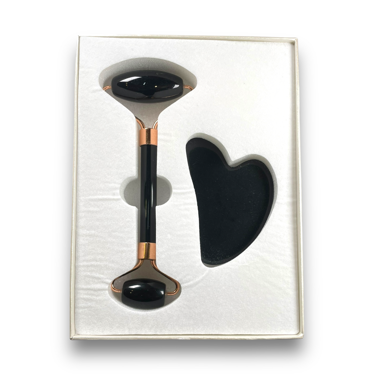 Coffret gua sha & rouleau de massage obsidienne noire effet detoxifiant