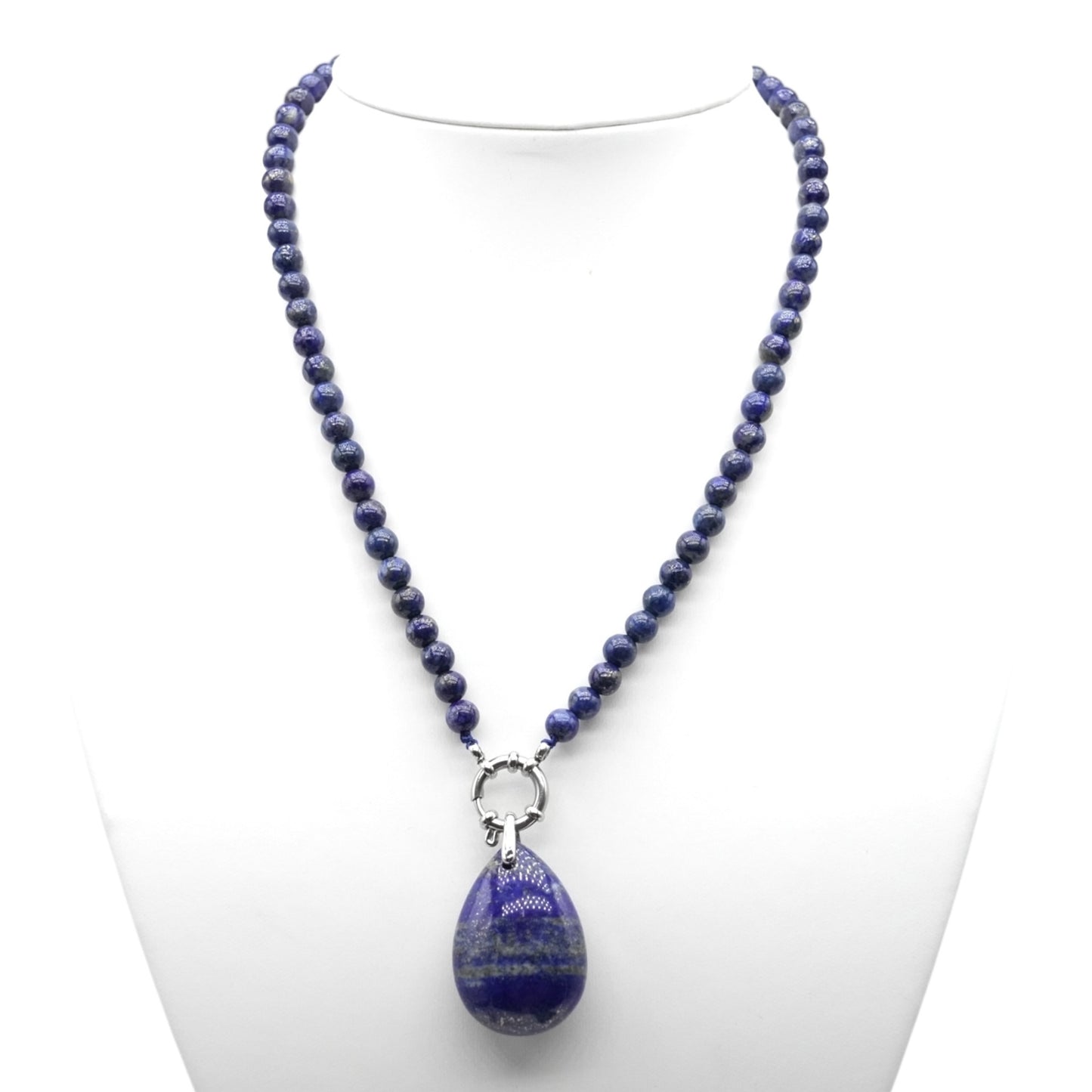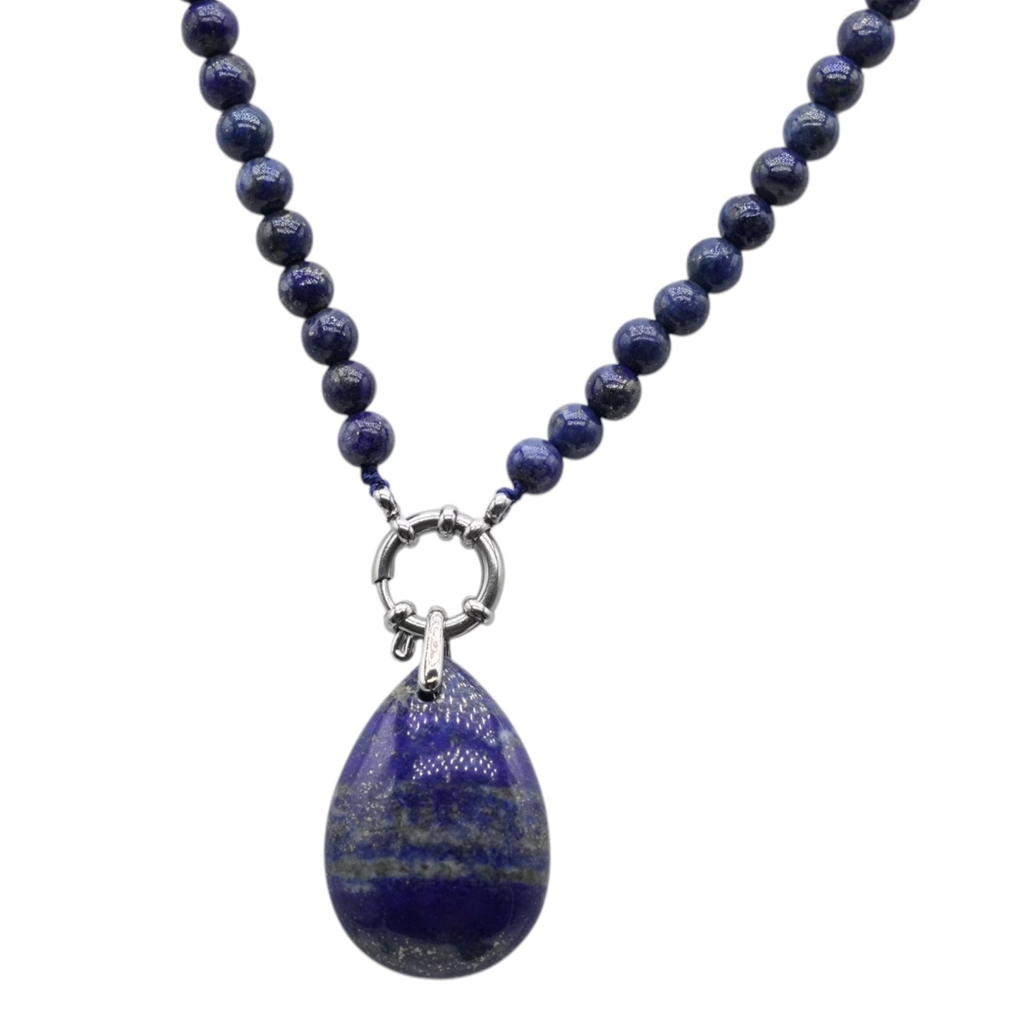 Collier boule en Lapis A attache bouée en acier argenté avec pendentif