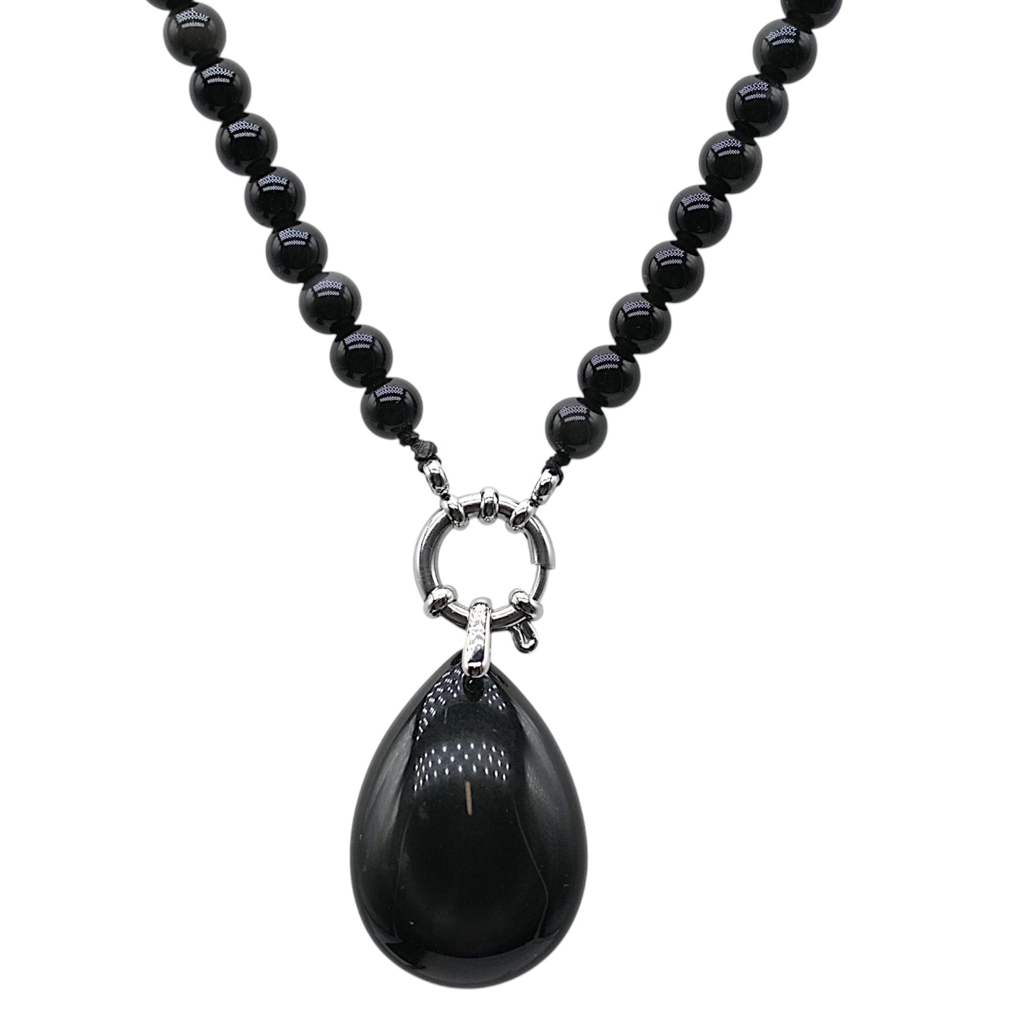 Collier boule en Obsidienne céleste attache bouée en acier argenté avec pendentif