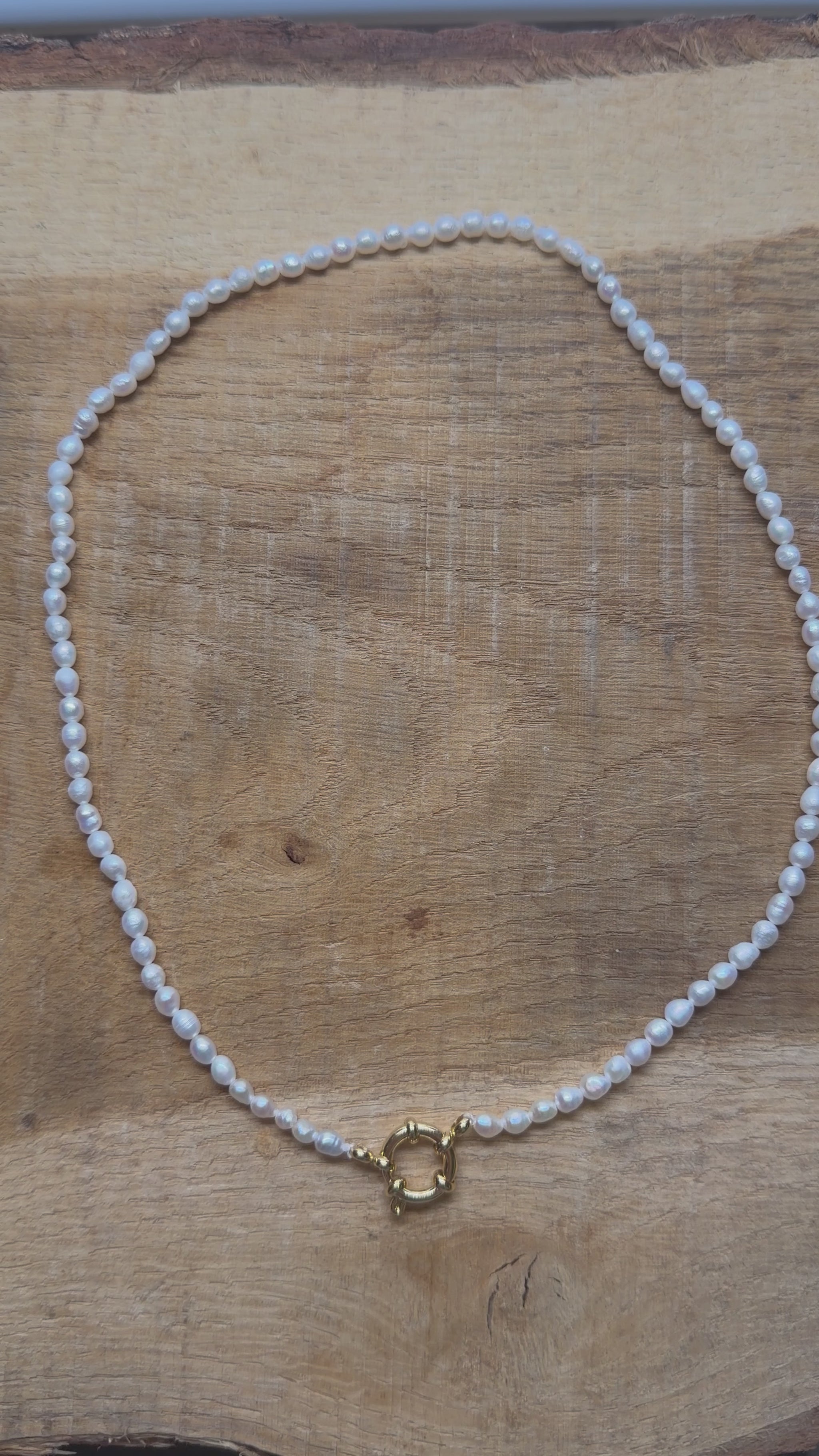 Collier en perles d’eau douce 3.5 mm attache bouée en acier doré numero 6