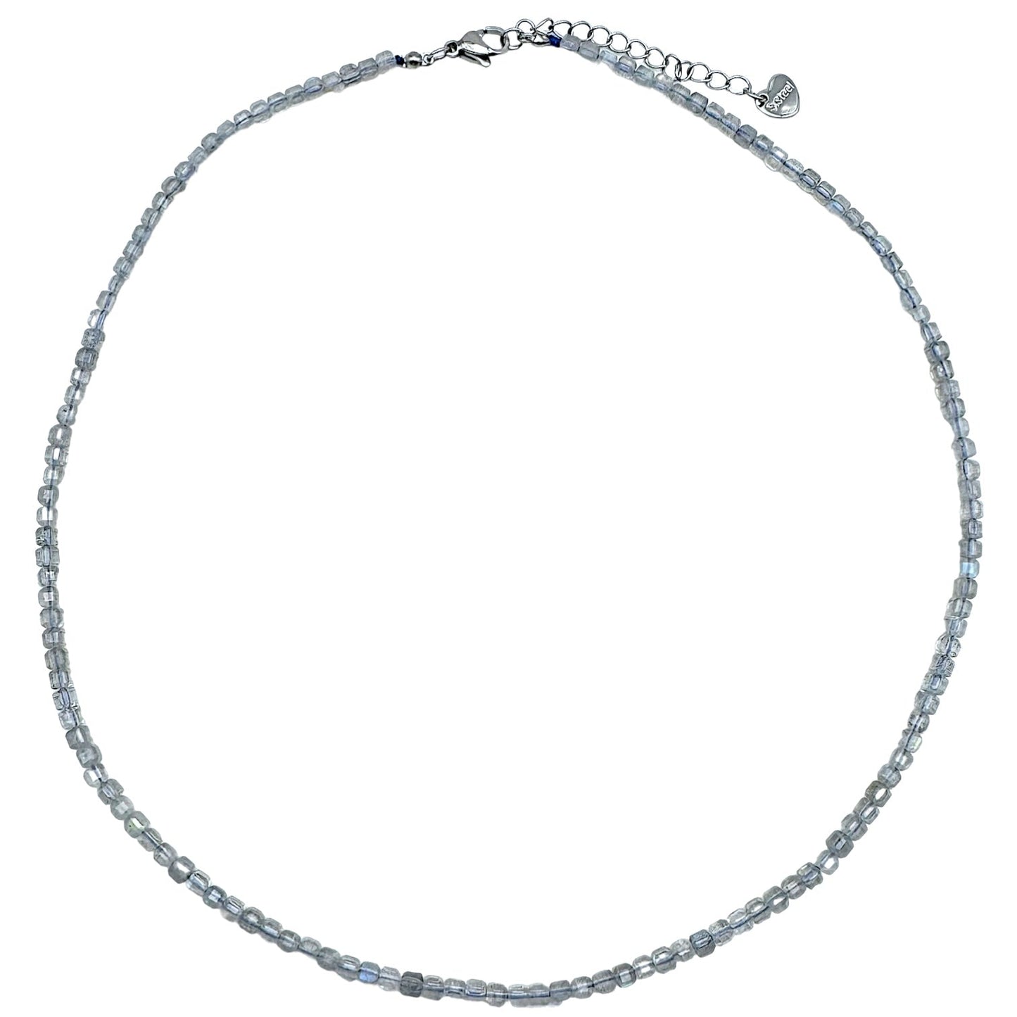Collier Labradorite carré 3x3mm acier inoxydable doré/argenté