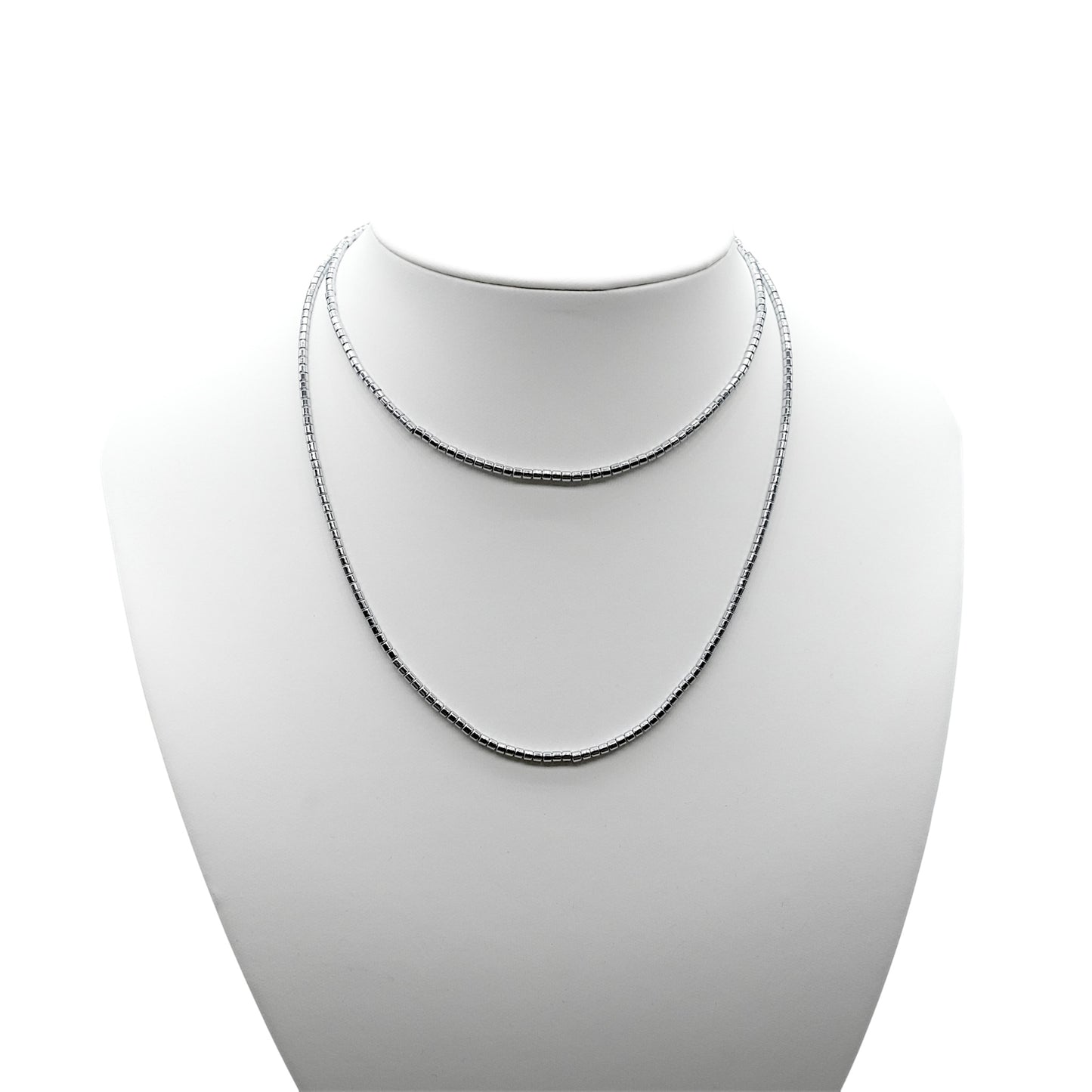 Collier sautoir 70 cm Hématite electroplaquée argenté 3mm CHA-1