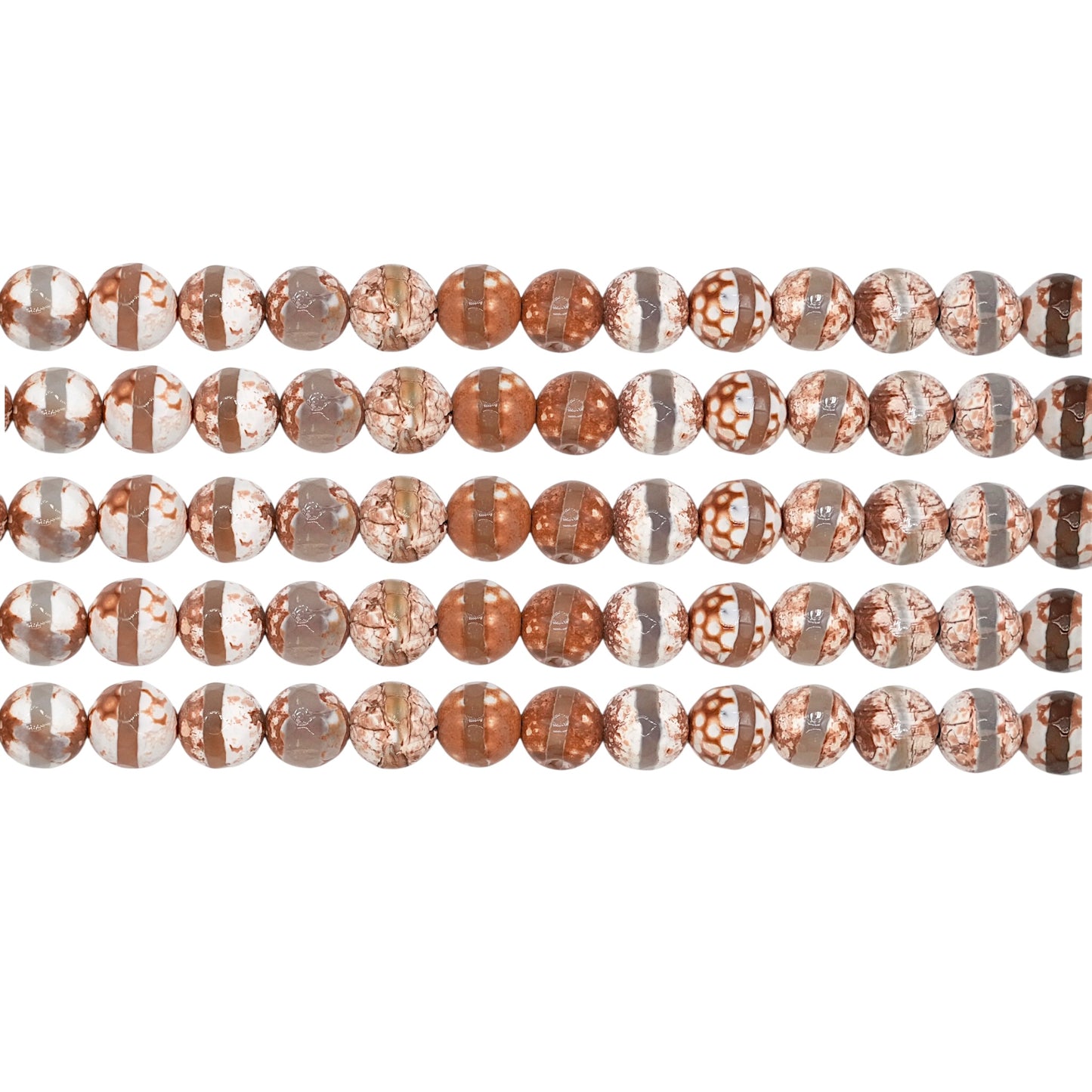 Les perle Dzi sont des perles d’agate gravées de lignes géométriques et de motif en forme d’œil (pour conjurer le mauvais œil) en nombre impair (pour porter chance).
