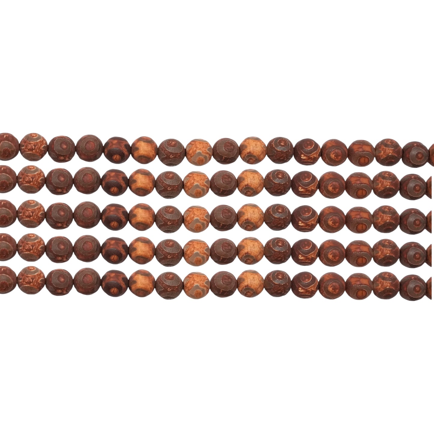 Les perle Dzi sont des perles d’agate gravées de lignes géométriques et de motif en forme d’œil (pour conjurer le mauvais œil) en nombre impair (pour porter chance).