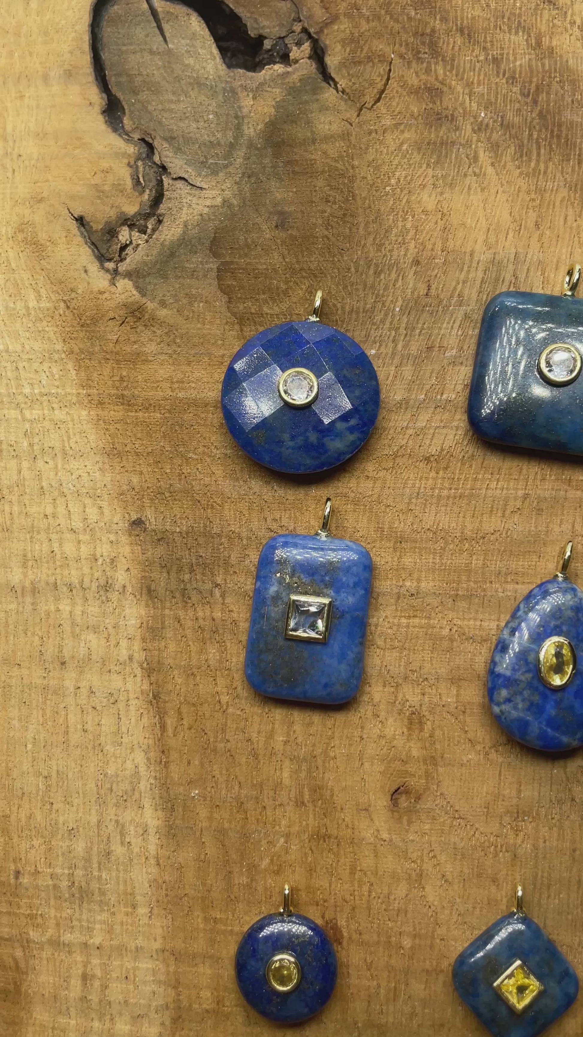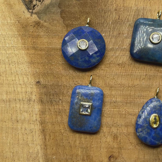 Pendentif en lapis avec pierre Zircon couleur aléatoire (11 formes disponible)