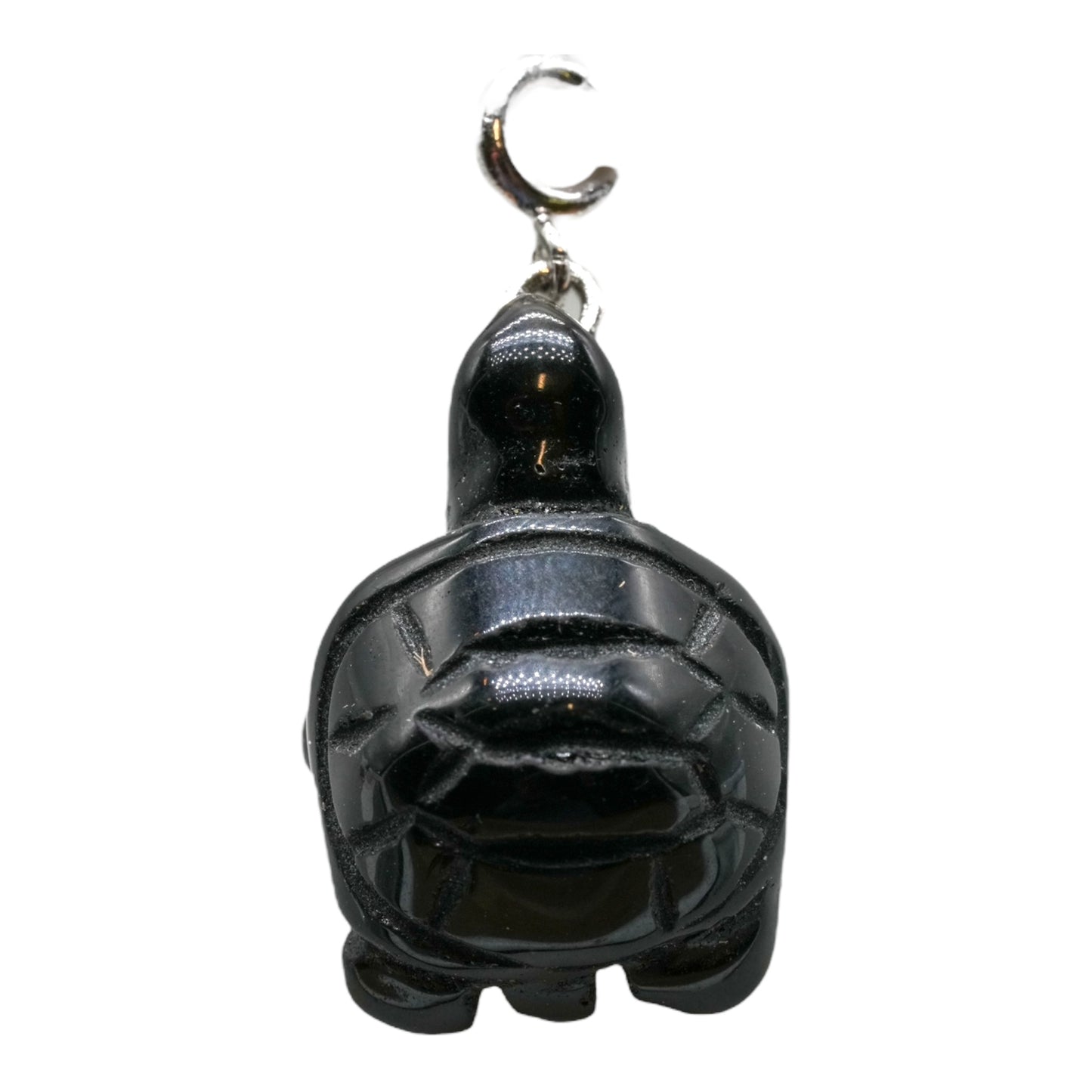 Pendentif en tortue argenté en Obsidienne noire (symbole de protection & sagesse)